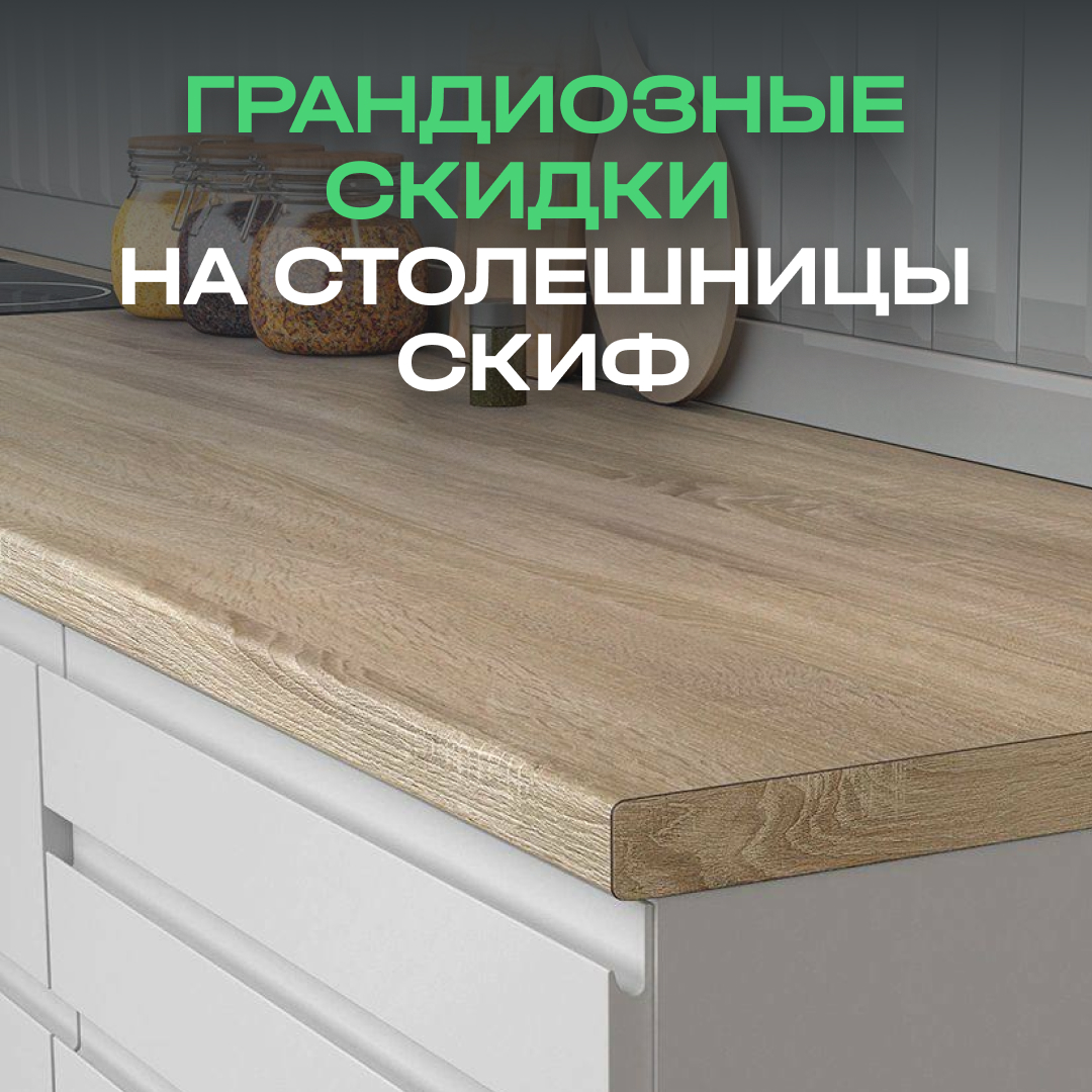 Уважаемые клиенты, Roomatic объявляет о грандиозной распродаже всего ассортимента столешниц и мебельных щитов СКИФ! Теперь вы можете приобрести качественные материалы для производства мебели по еще более выгодным ценам.
