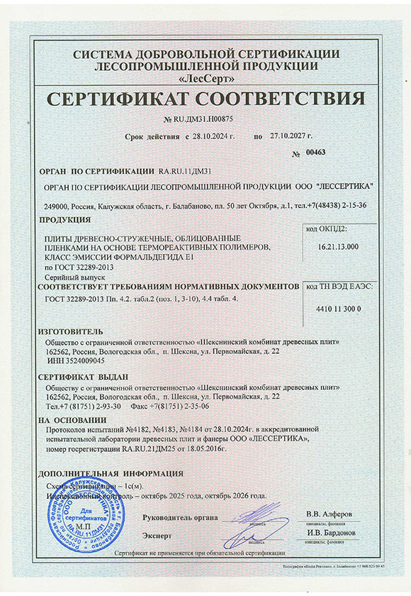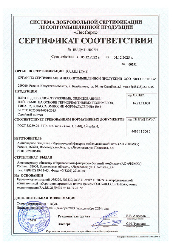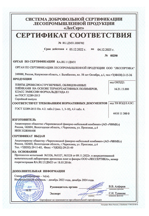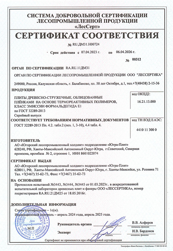 Сертификат соответствия ЛДСП Югра-плит