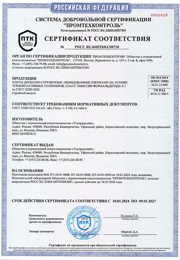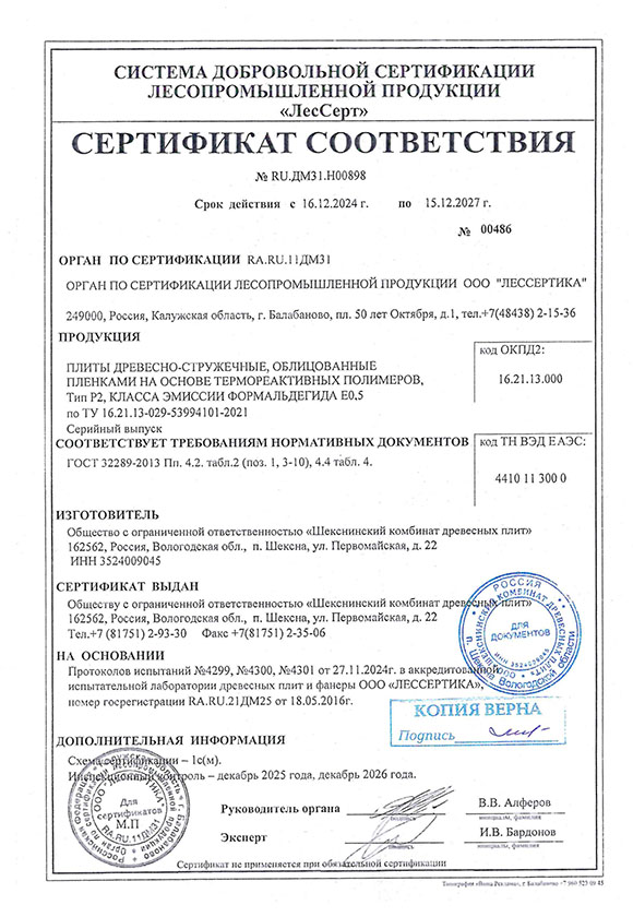 Сертификат соответствия ЛДСП Kronospan