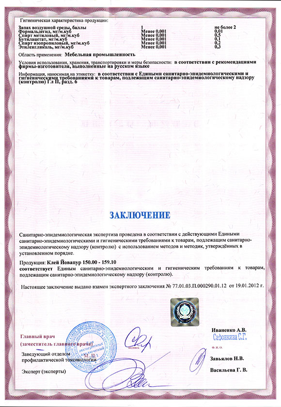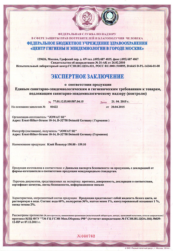 Экспертное заключение Клей - Йовапур 150.00-159.10 JOWAT SE. Стр. 1