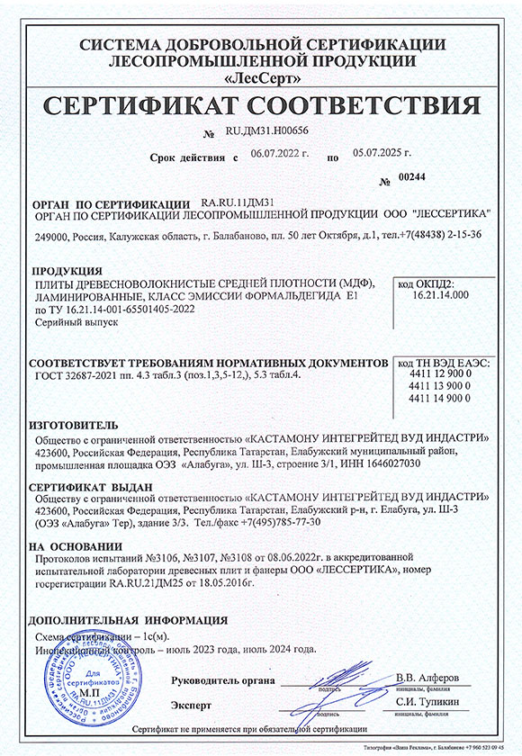 Сертификат соответствия ЛМДФ Kastamonu