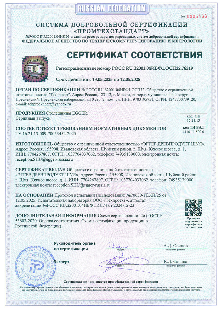 Сертификат соответствия EGGER. Столешницы