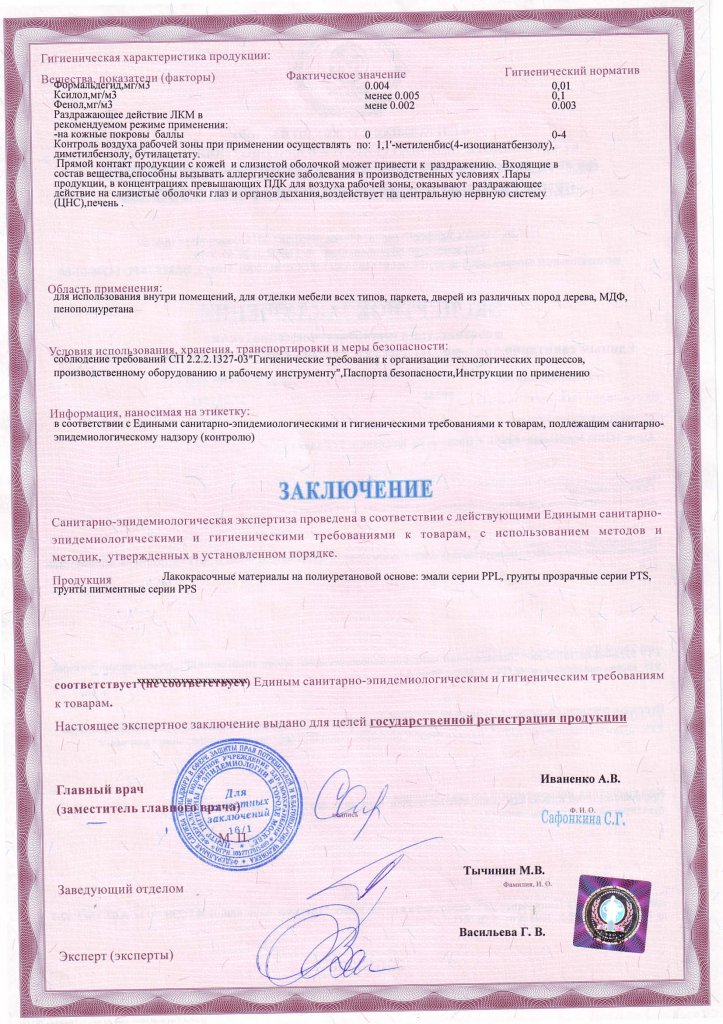 Экспертное заключение ЛКМ серии PPL ООО "Техноколор" стр.1