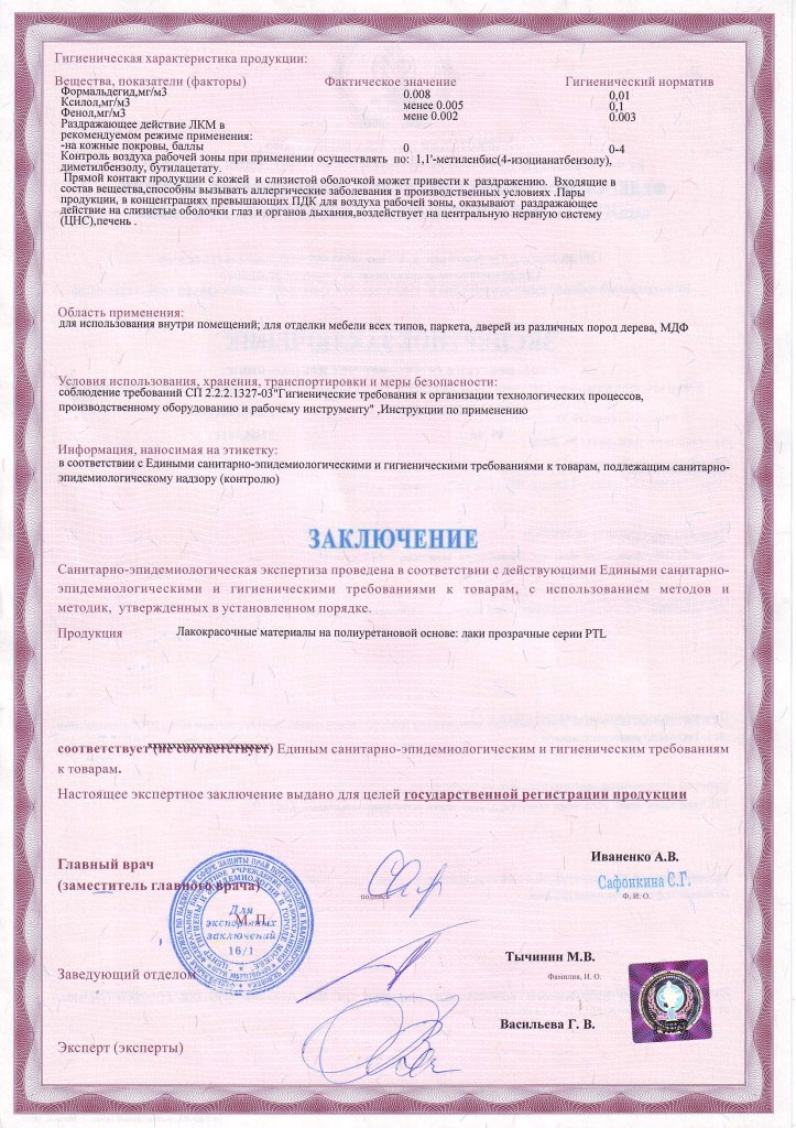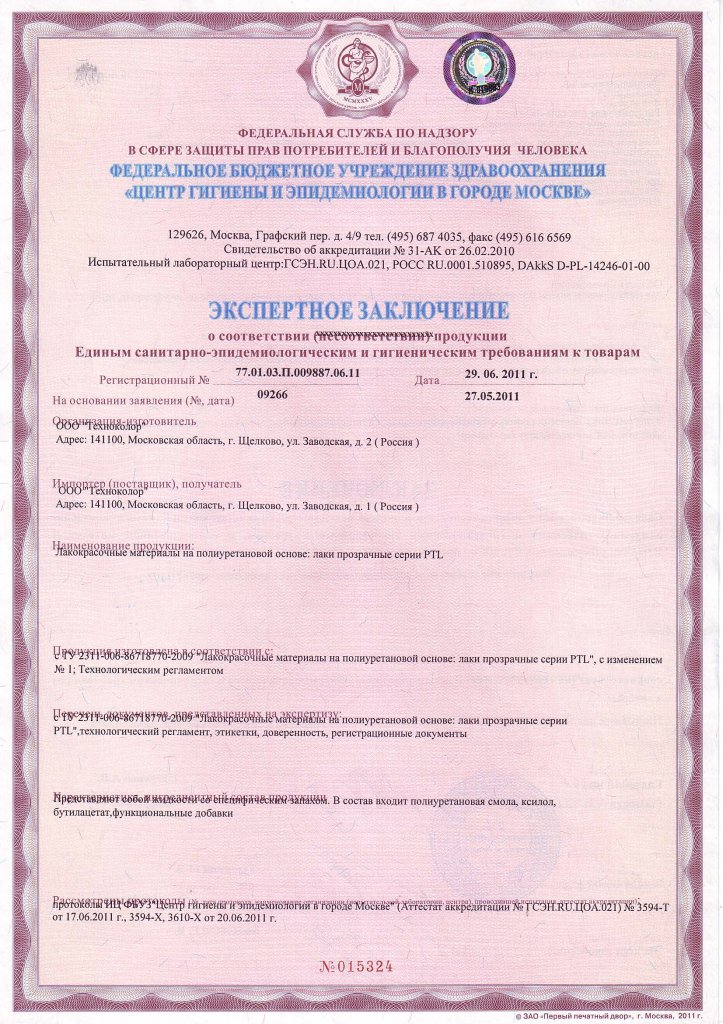 Экспертное заключение ЛКМ серии PTL ООО "Техноколор" стр.1