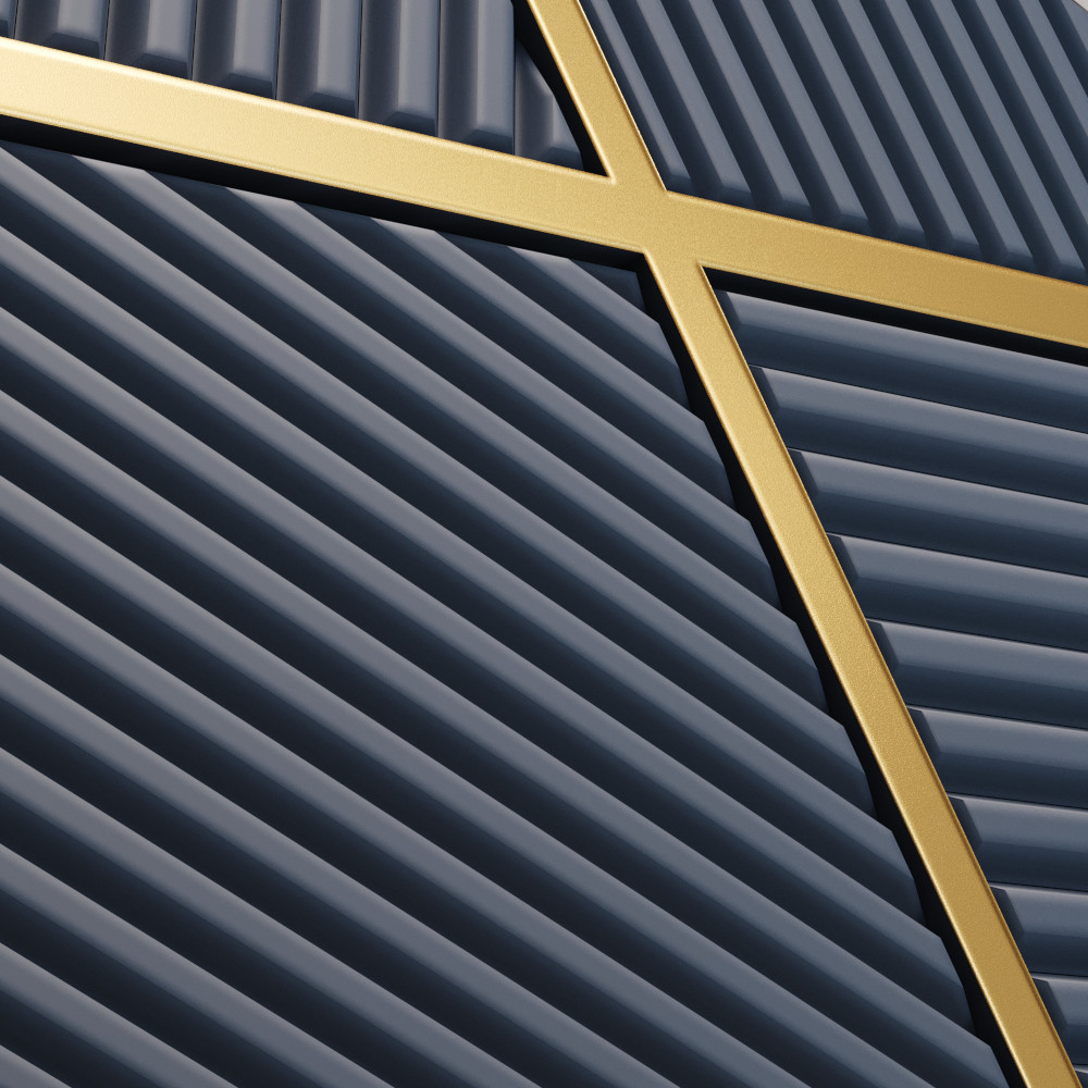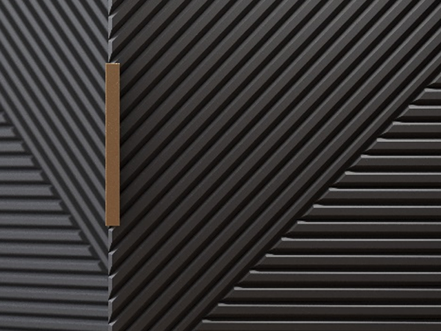 Модная реечная структура, сочетаемая под разными углами через полосы патины. Для построения изделия с данной фрезеровкой используется технология наложения паттерна.