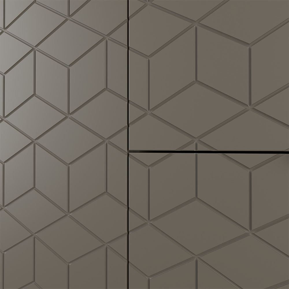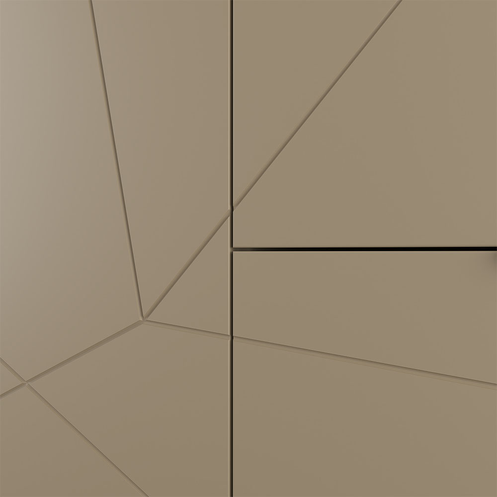 Ультрамодные фасады для дверей шкафов. Фрезеровка разработана по технологии наложения паттерна для создания неповторимых цельных геометрий.