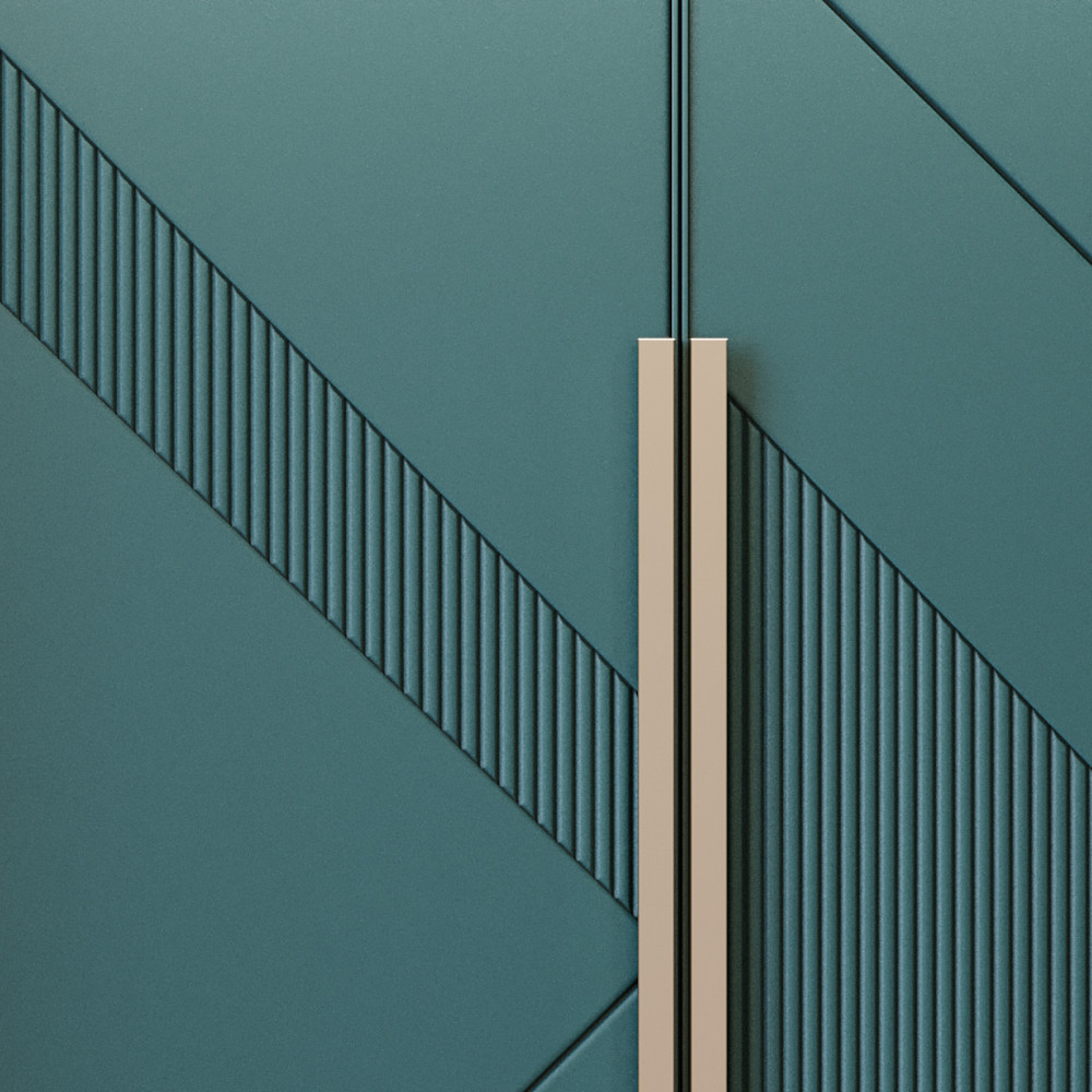 Идеальные фасады для распашных шкафов с четкими линиями и простой геометрией. Зеркальная фрезеровка, которая легко масштабируется.