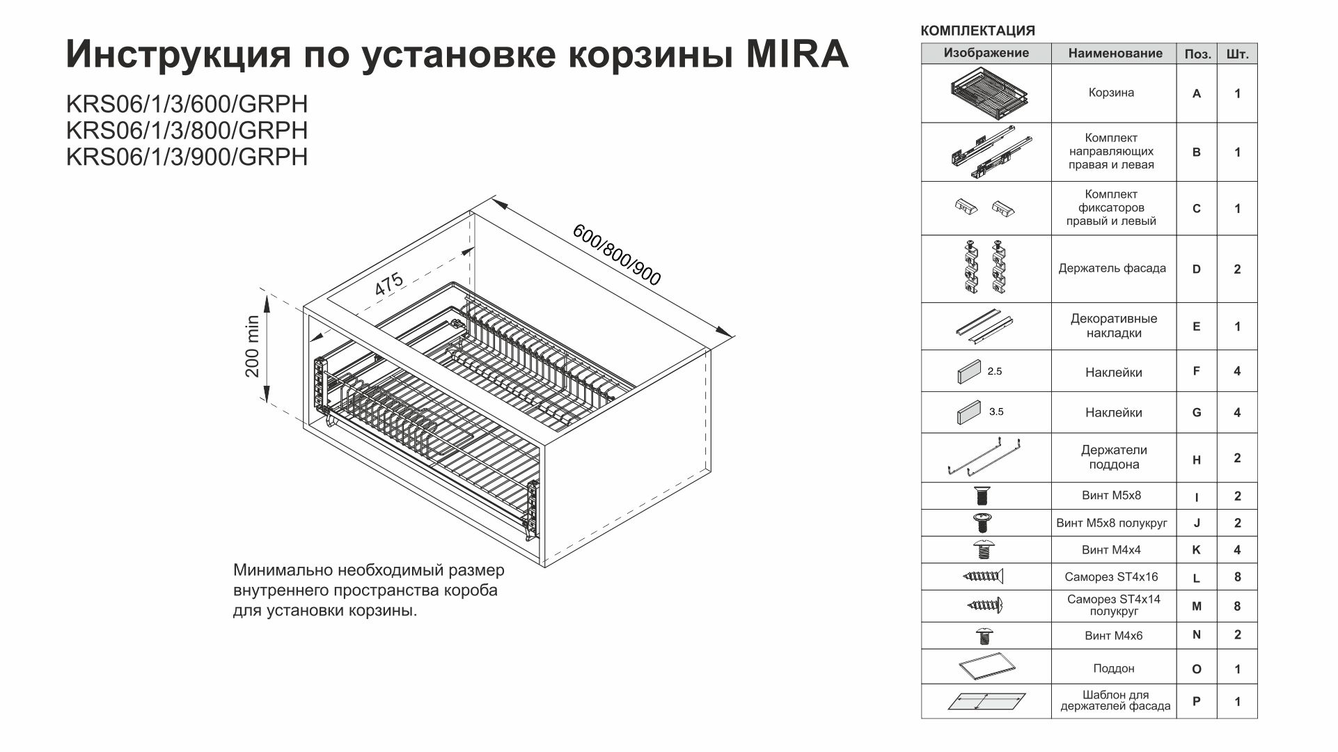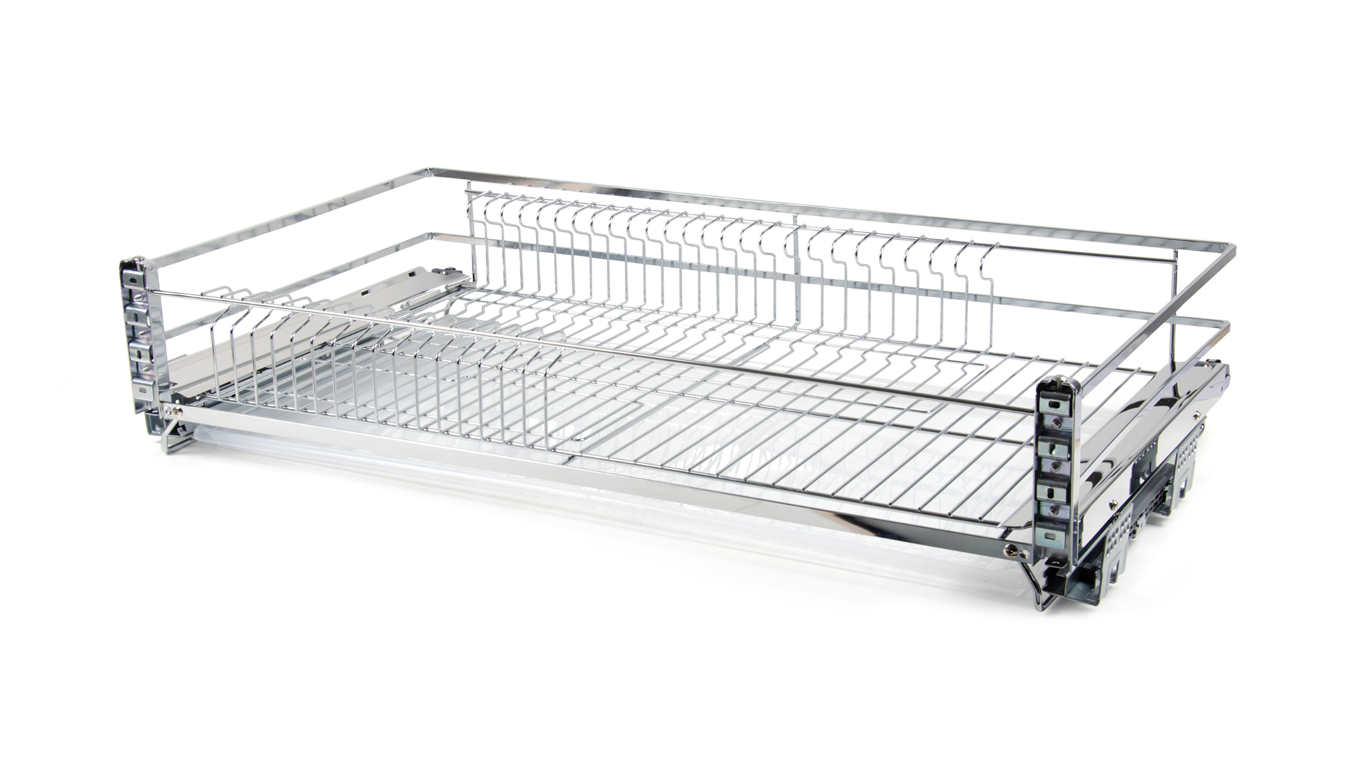 MIRA KRS06 — выдвижная корзина-сушка в эксклюзивном дизайне с плоским прутком предназначена для хранения разноплановой посуды в нижней базе мебельного гарнитура.