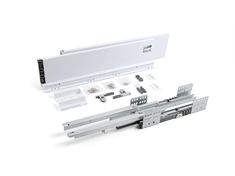 СТАРТ PUSH SB29 — комплект систем выдвижения для сборки выдвижного мебельного ящика с прямыми боковинами средней высоты с открытием от нажатия для мебели без ручек.