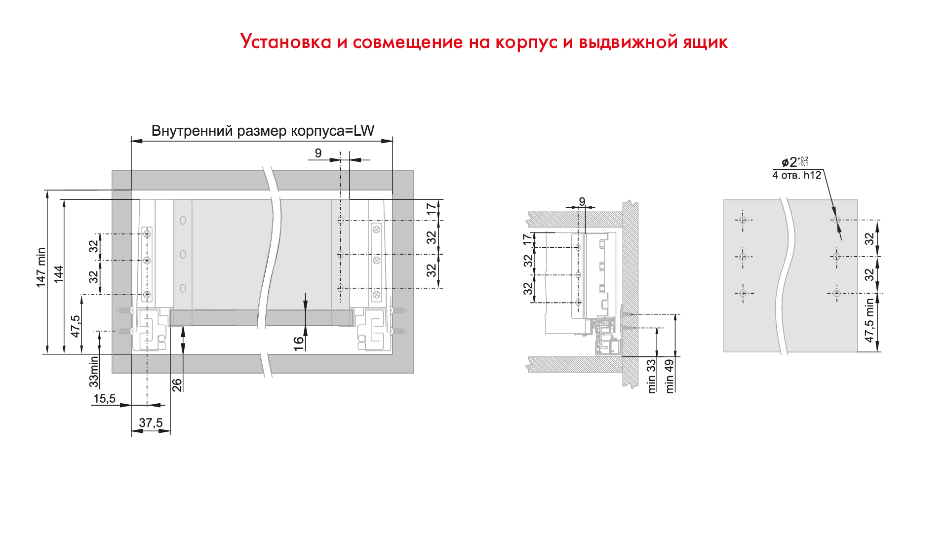 СТАРТ SOFT SB19 — комплект систем выдвижения для сборки выдвижного мебельного ящика с прямыми боковинами средней высоты 118 мм для минимальной высоты проёма 147 мм.