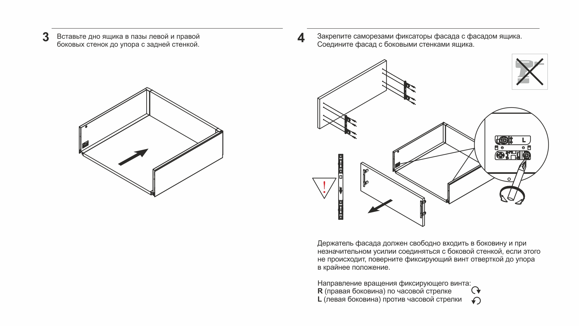 Для сборки выдвижного мебельного ящика на базе СТАРТ SOFT ЭКСТРА SB21 необходимо самостоятельно изготовить фасад, заднюю стенку и дно ящика.