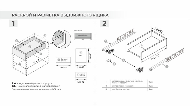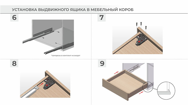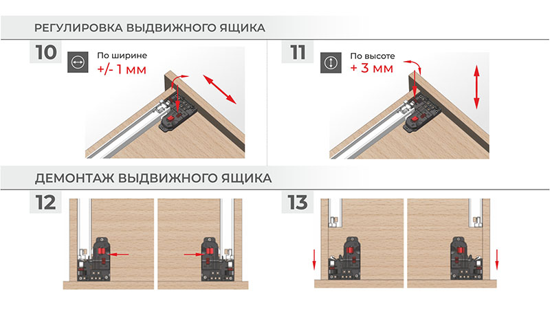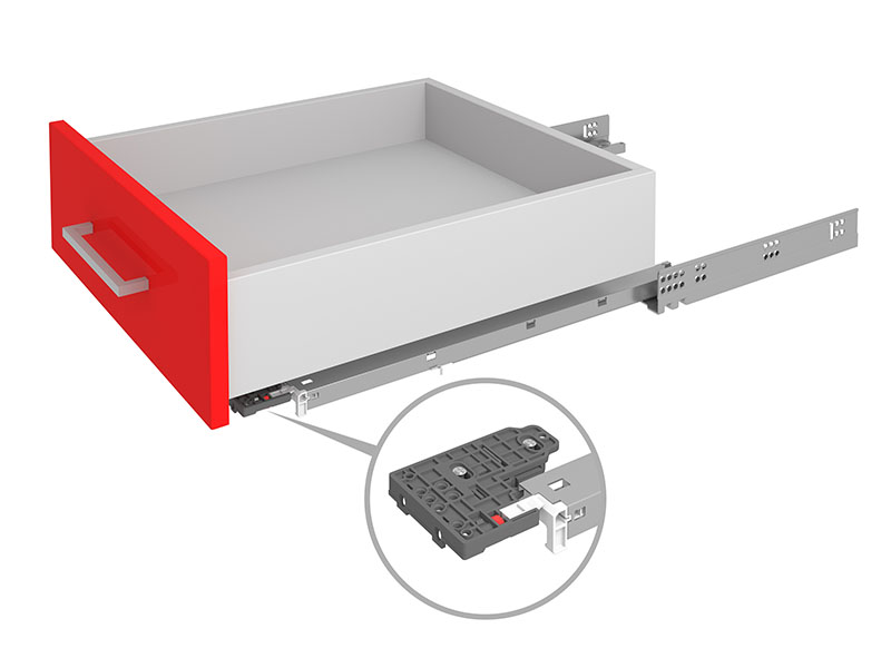 - простой монтаж выдвижного ящика на направляющие и быстрый демонтаж;