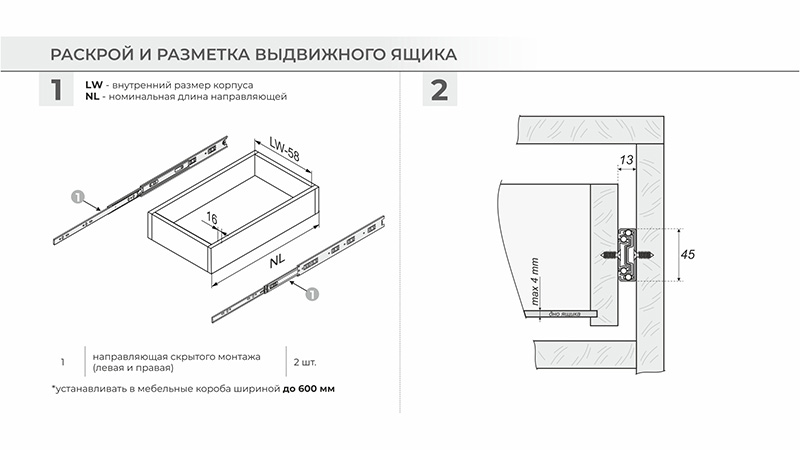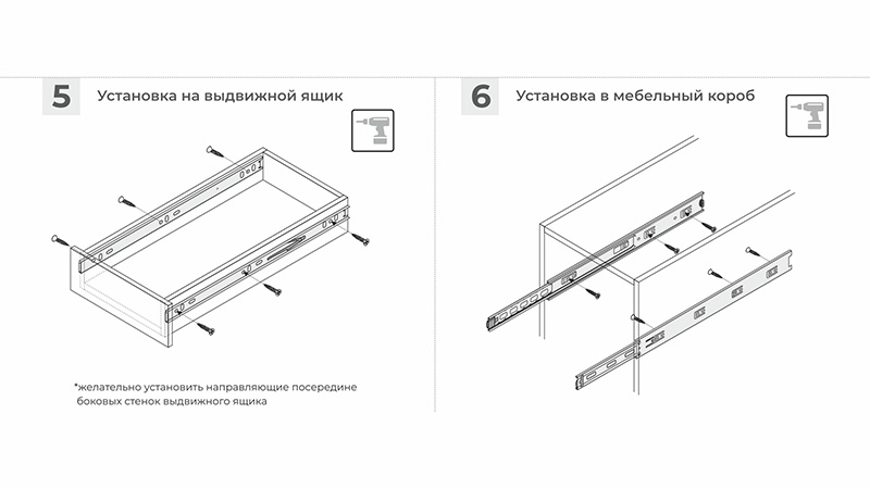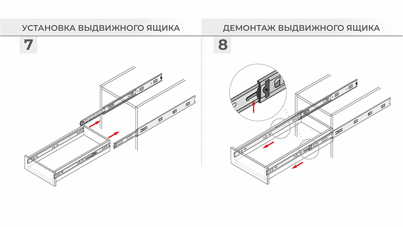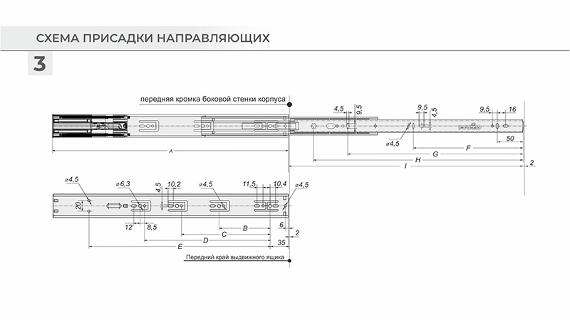 Представлены в широком диапазоне длин: от 300 до 550 мм (с шагом 50 мм), с полным выдвижением, начиная с длины 450 мм.