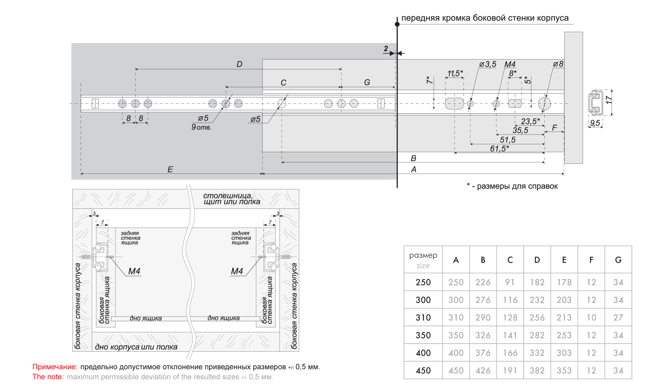 Направляющие шариковые для небольших выдвижных ящиков и полок. Телескопический механизм неполного выдвижения (3/4 длины), двухсекционный, неразборный, с упором и защитой от выкатывания.