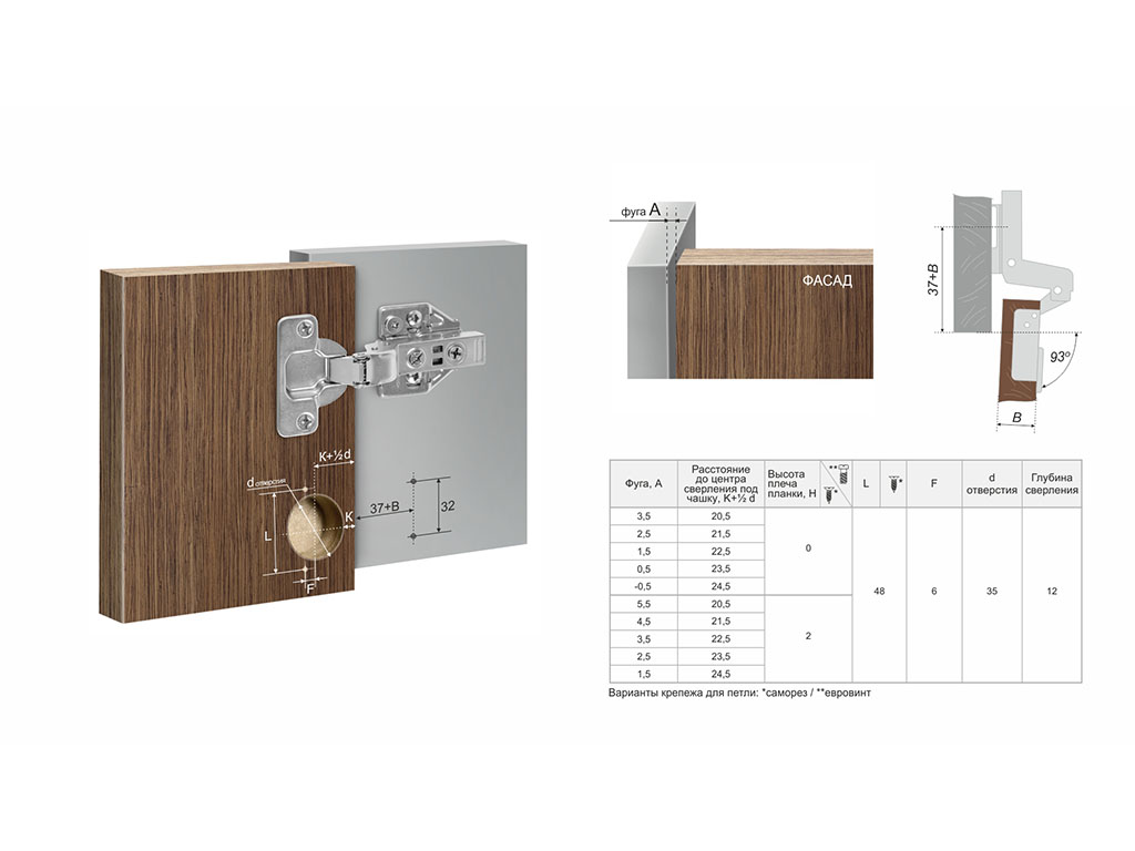 - Быстрый монтаж Clip-on и система QuickClick для монтажа петли с одной или другой стороны планки на усмотрение сборщика;