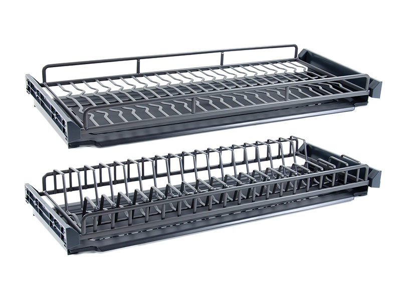 Каждый «этаж» PANDORA оснащён поддоном из плотного пластика графитового цвета, который легко вынимается для чистки. Выверенный узор решёток позволяет размещать тарелки популярного формата, а утолщённые прутки способствуют лучшему удерживанию посуды.