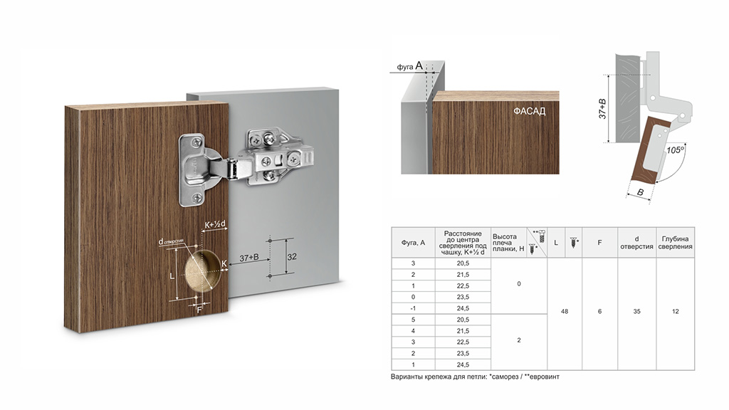 Петля для вкладной двери NEO PROFI PUSH H961C02 Clip-on 105° d35 без пружины