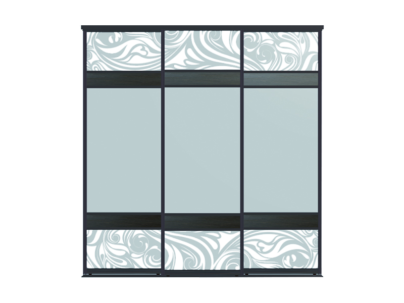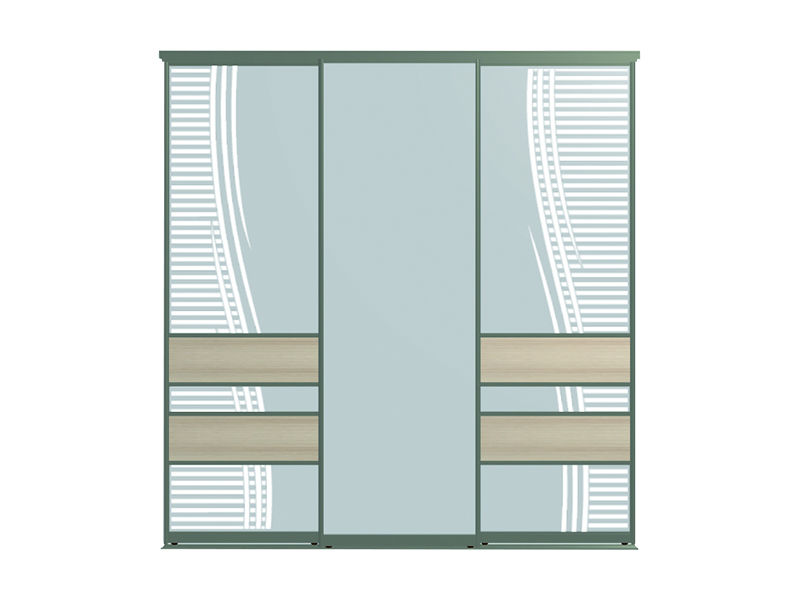 В дополнение к более бюджетной коллекции Модерн здесь уже применён полный спектр материалов, используемых нами для производства раздвижных дверей. Декорированные рисунками зеркала и стекла, кашированный алюминиевый профиль с текстурой дерева, широкий выбор декоров ЛДСП.