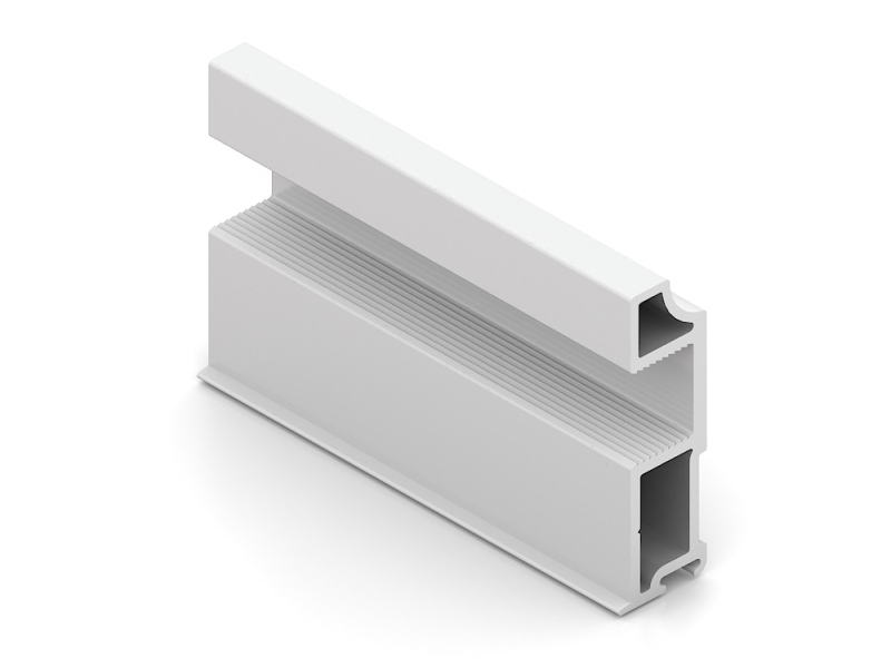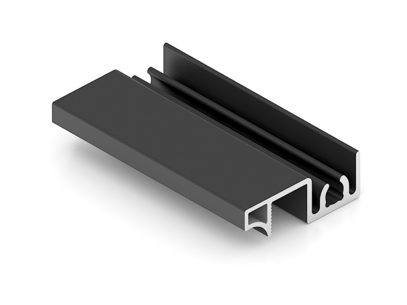 Невидимый широкий горизонтальный профиль обеспечивает необходимую жесткость конструкции и возможность установки системы со скрытой верхней направляющей на кронштейнах.